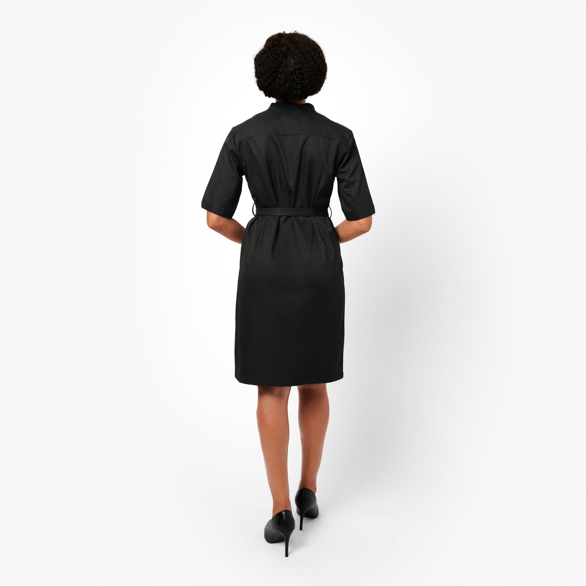 Add an extra element to your staff with the finest bodycon wrap dress. It is made out of 95% polyester and 5% spandex, making it a perfect fit for all times of the year. This mini dress with a 3\4 length sleeve is ideal for your hotel or cafe.