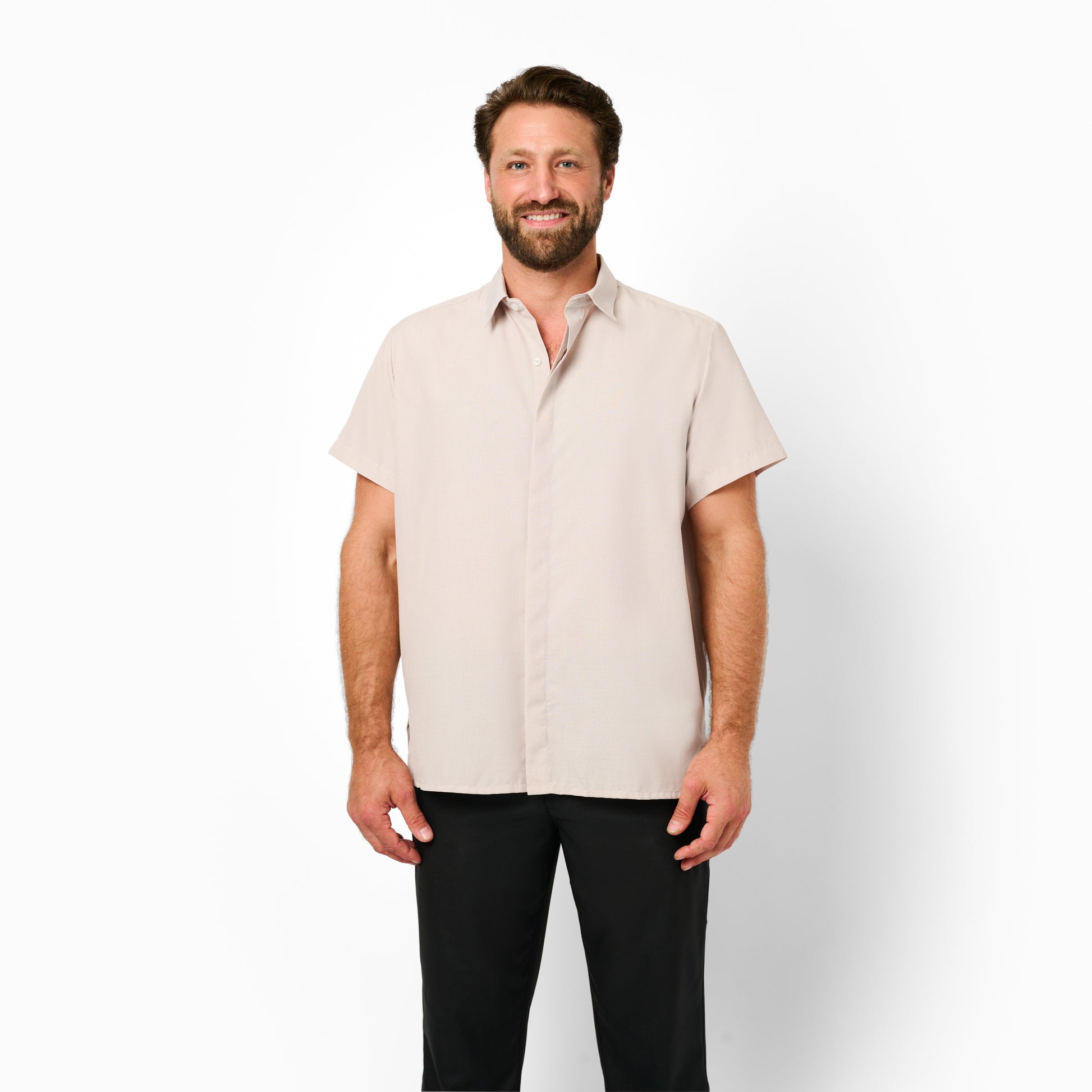 This hidden button short-sleeve shirt is made up of 100% polyester. This shirt will give the formal look that will guarantee you lasting impressions. The soft fabric gives the utmost comfort without damaging the look. This shirt will make your employees look classy and feel cozy.