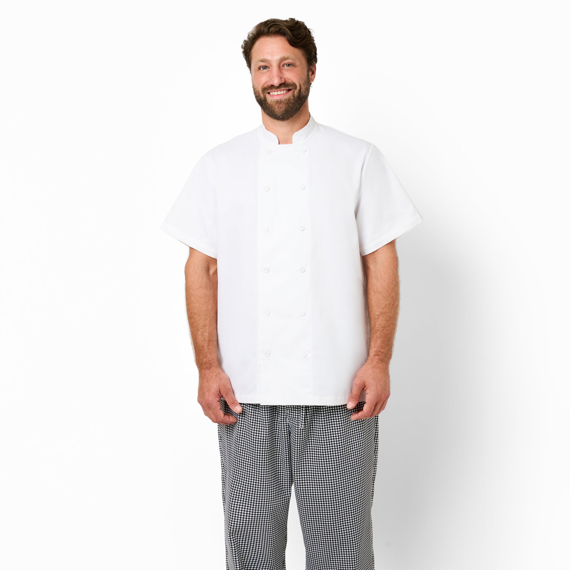 This fashionable chef coat is made with 65% polyester and 35% cotton, which makes it perfect for burning summer and chilling winter. Its anti–shrink and anti-wrinkle features make it a great fit for your employees. The durable fabric will last longer life and the dark color won’t give the spotlight to the stains.