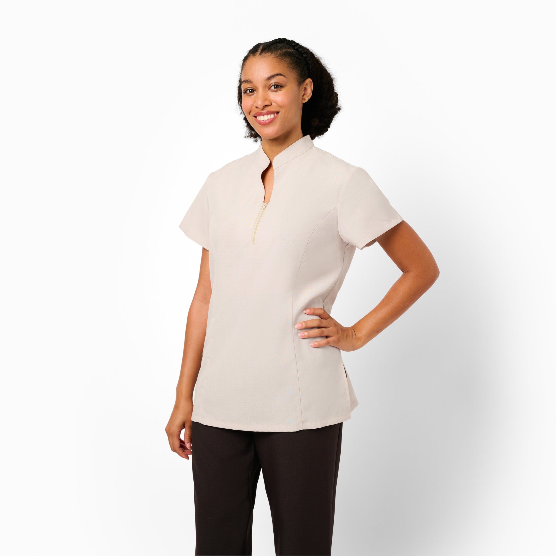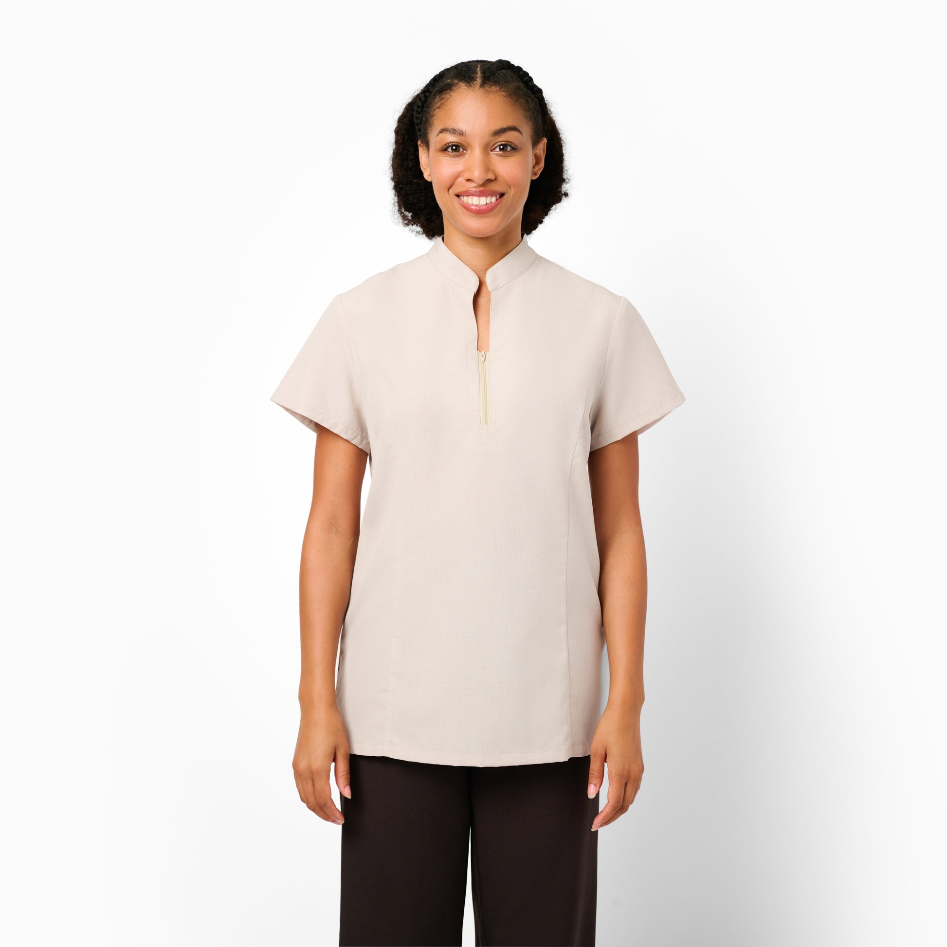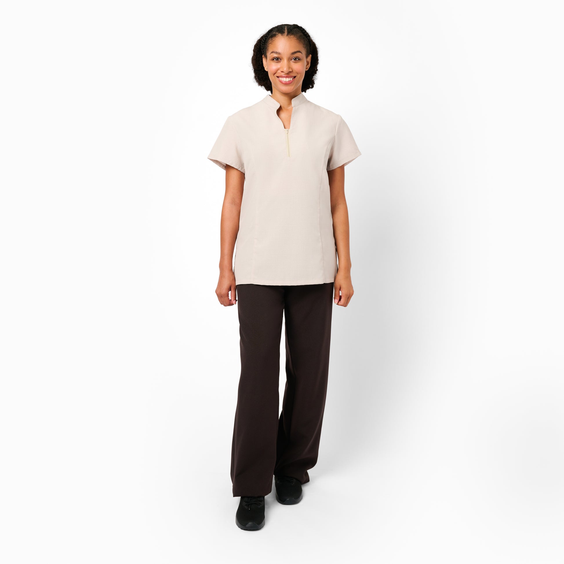 The top is uniquely designed to bring out the simplicity and sincerity in your Hospitality brand image. It comes with 100% polyester makes it manageable in busy hours. Plus, it offers a tailored-fit structure with a buttoned frontline and short sleeves.