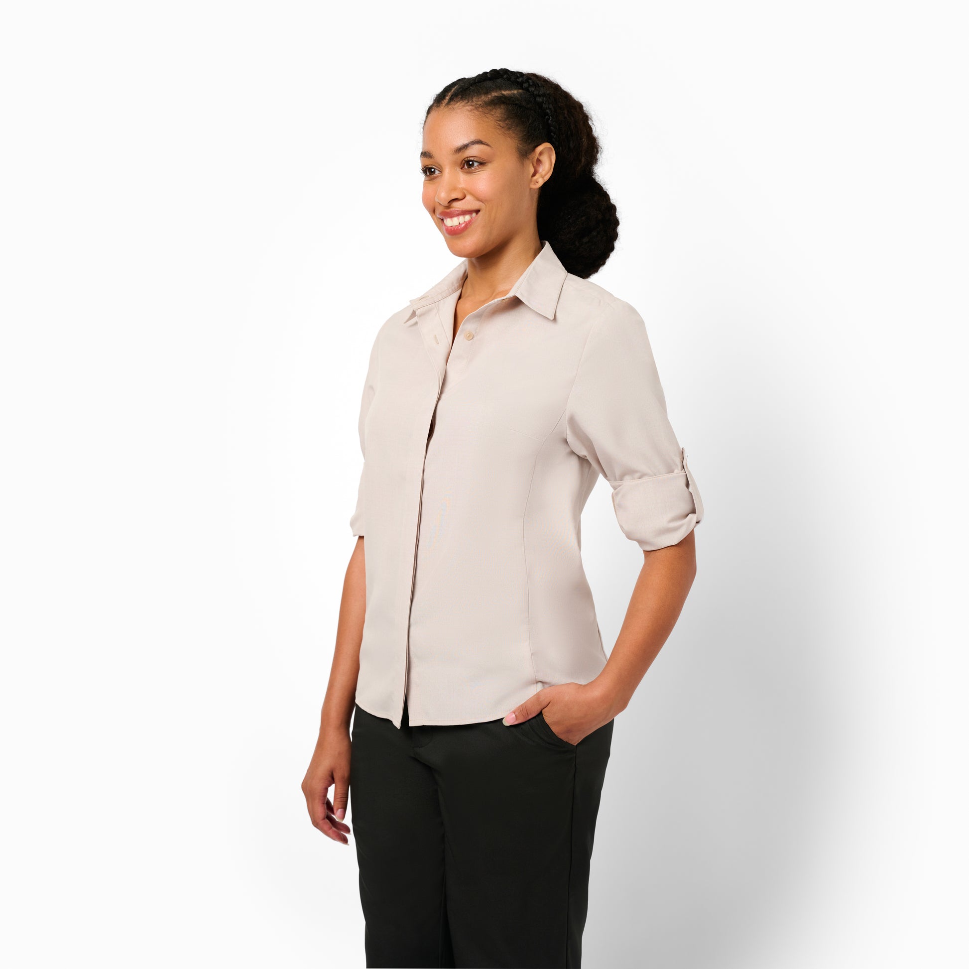 This comfy top is made up of 65% polyester and 35% cotton. It is a great blend of fashion and functionality. This top will give a professional makeover to your staff. The perfect length and the perfect fit of the top will add extra grace to your staff. Adore your team with this top to give a sense of sophistication.